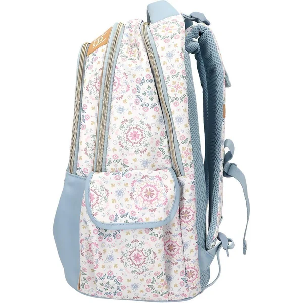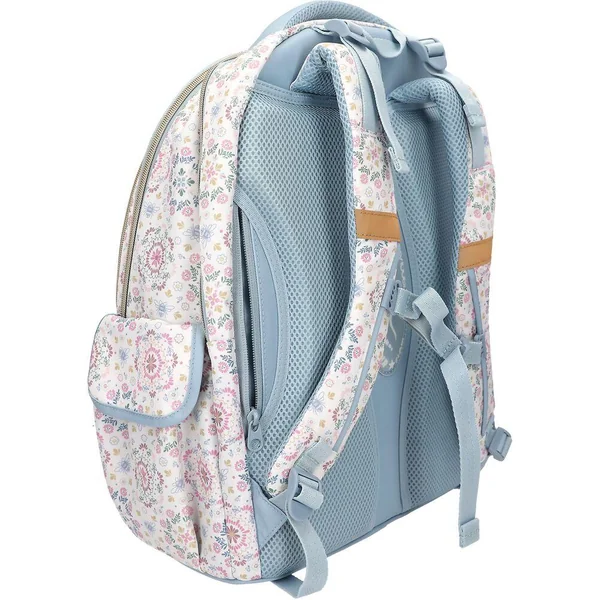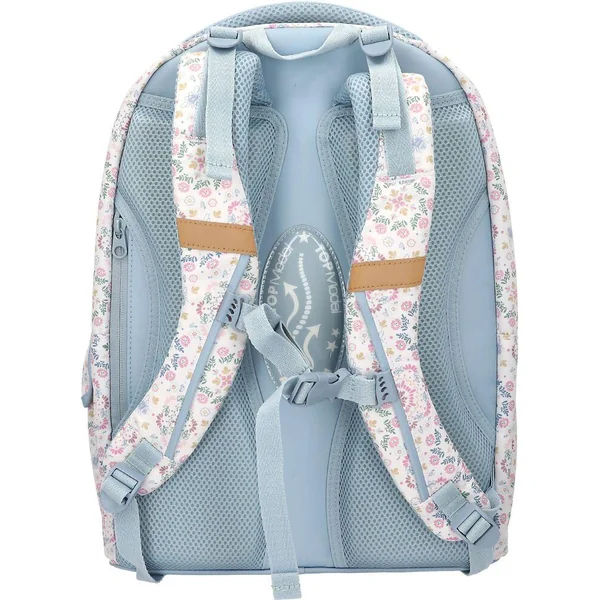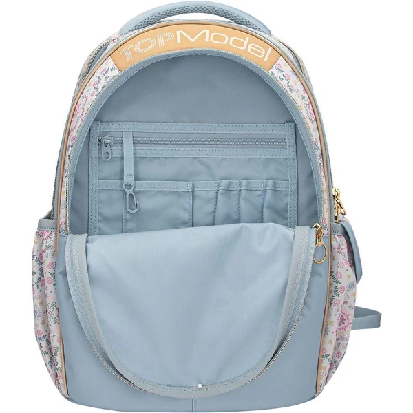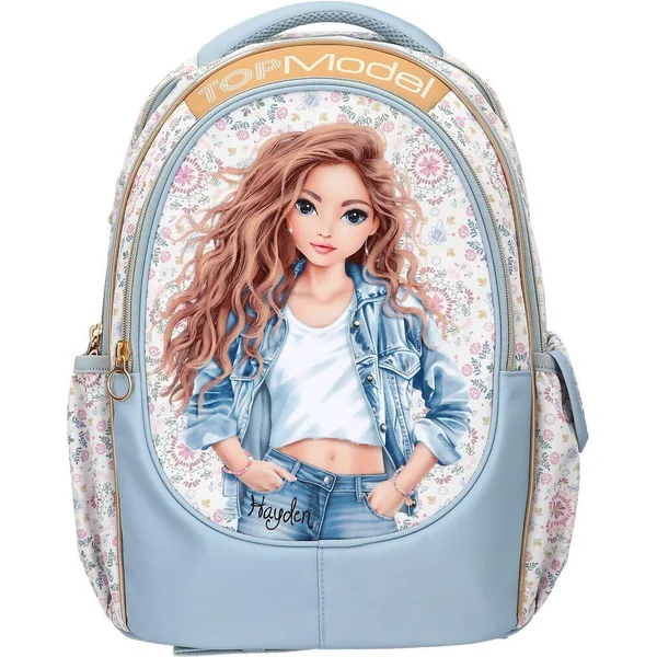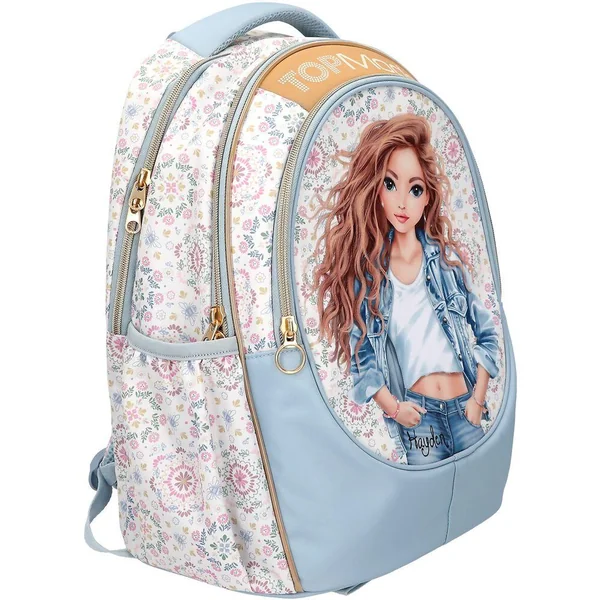 TOPModel Sac à dos scolaire FESTIVAL FUNÀ la fois ludique et décontracté : ce sac à dos scolaire TOPModel présente un superbe motif mannequin en jean sur sa grande poche avant et un motif floral sur fond crème au dos et sur les côtés. Avec de nombreux détails bleu clair, des fermetures éclair dorées, deux poches latérales, un dos matelassé, des bretelles réglables et une poignée matelassée. Matière principale : 100 % polyester.