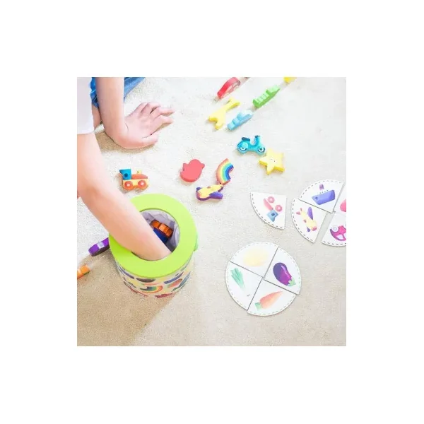 Ce formidable jeu de reconnaissance tactile consiste à mettre la main dans le sac pour trouver les pièces voulues.