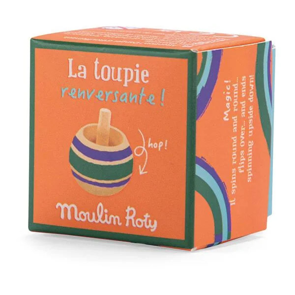Petite toupie en bois coloré vert qui fait des pirouettes comme par magie ! Lancer fort la toupie, elle va tourner, tourner… pour terminer sa ronde à l’envers sur sa tige.