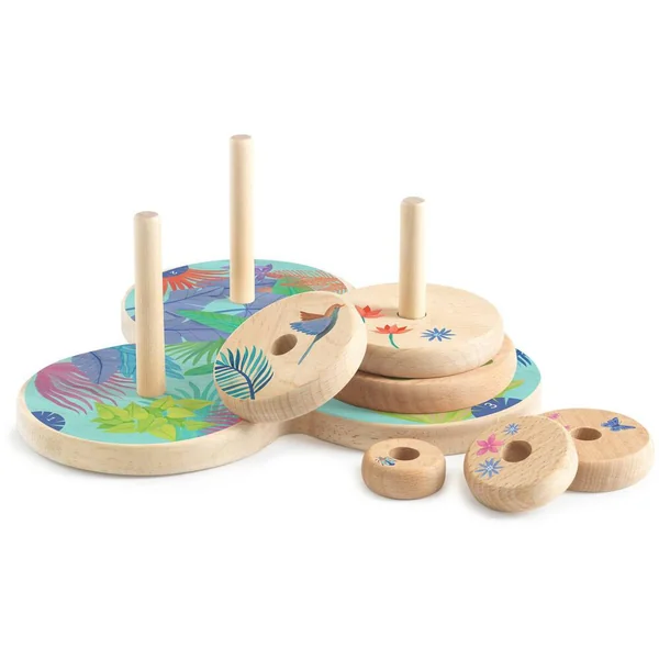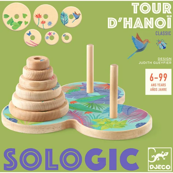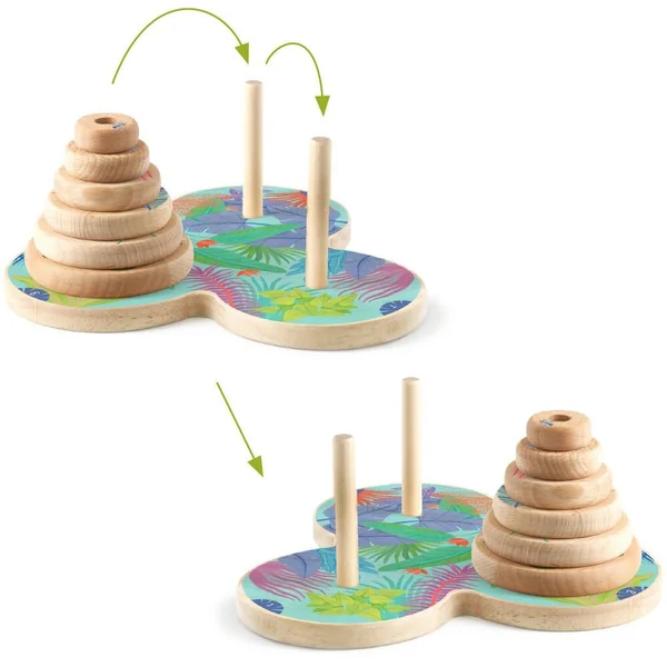 Un objet qualitatif et esthétique. Un jeu traditionnel où, à la fin… tous les disques doivent arriver sur le dernier pique… dans le bon ordre !