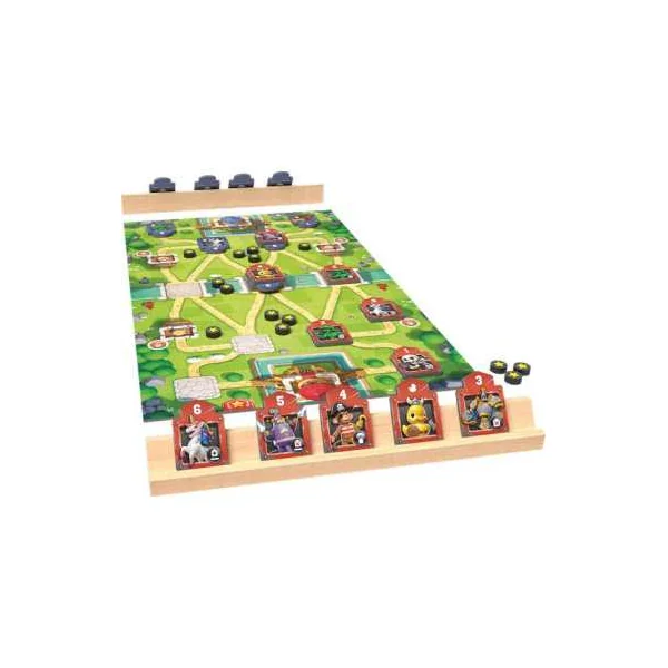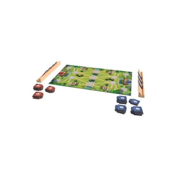 À votre tour de jeu, piochez deux tuiles « Troupe » de votre couleur ou posez une tuile en respectant les règles : elle doit se placer sur une case vide ou par-dessus une tuile de nombre inférieur, et vous devez pouvoir tracer une ligne continue entre votre base et la tuile que vous posez. Ensuite, appliquez son pouvoir. Petit à petit, vous gagnerez des médailles ou prendrez la base adverse, remportant la partie. Affrontez-vous sur les 8 champs de bataille différents pour varier les stratégies!