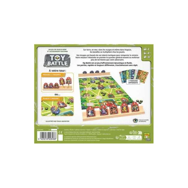 Sur terre, en mer, dans les nuages et même dans l’espace, les batailles se multiplient chez les jouets : ils ont besoin de vous! Manœuvrez vos troupes et utilisez astucieusement leurs effets pour prendre l’avantage sur votre adversaire. Votre mission ? Capturer le quartier général ennemi ou remporter un maximum de médailles. Préparez-vous à un affrontement sans pitié.
