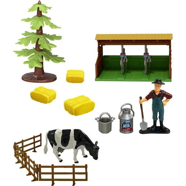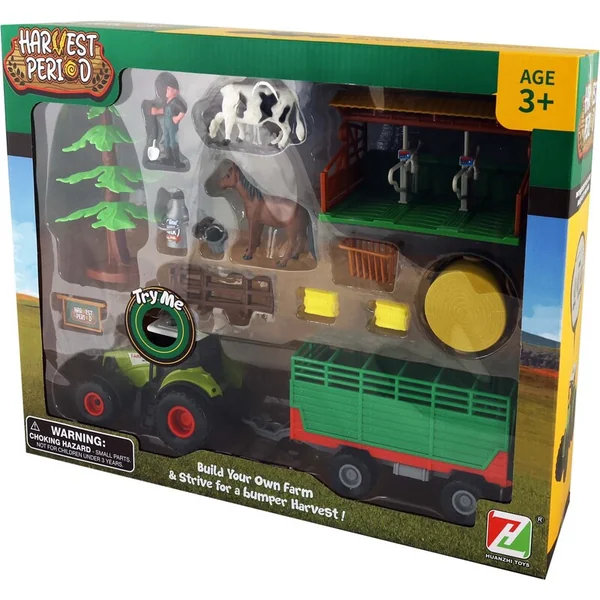 Grand tracteur en plastique avec remorque à foin et accessoires. Ce set est un outil important pour chaque petit agriculteur.