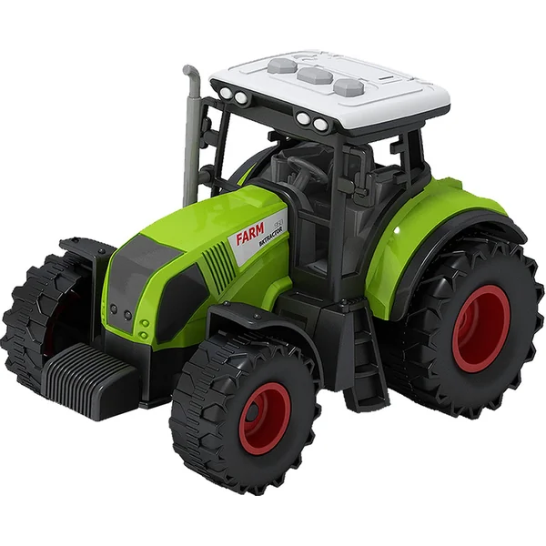 En appuyant sur l’un des boutons sur le toit, le tracteur émet des sons réalistes et clignote. Il fonctionne avec 3 piles de type AG13/LR44, qui sont incluses dans l’emballage.