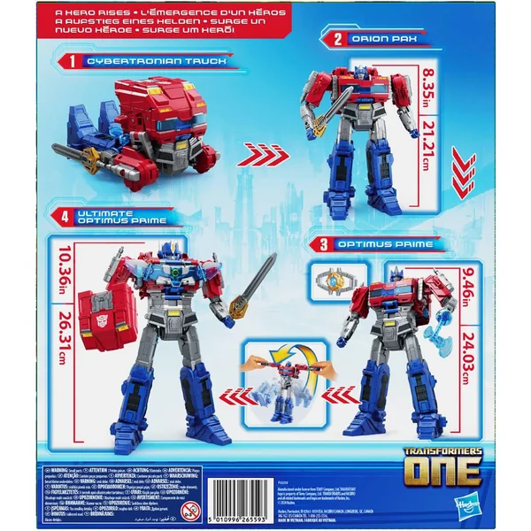 Cette figurine inspirée du film se transforme de manière unique en quatre modes : Orion pax, Camion cybertronien, Optimus prime et Ultimate optimus prime. Chaque transformation est une invitation à l’imagination et au jeu, offrant aux enfants la possibilité d’explorer de nouvelles histoires et batailles.