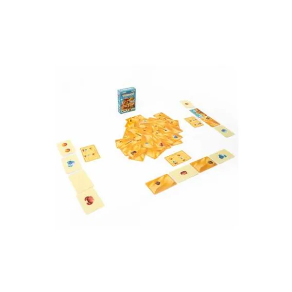 À leur tour, les joueurs peuvent prendre une carte du centre de la table si celle-ci est partiellement recouverte par une autre. Des indices présents sur la carte indiquent le trésor qui se cache en dessous. Les trésors se ressemblent mais ils n’ont pas la même valeur : les coquillages ne valent rien alors que les les pièces d’or rapportent 1 point, un duo de pierres précieuses (saphir + émeraude) donne 4 points alors qu’il faudra être celui qui a ramassé le plus de crabes pour obtenir 3 points à la fin. Et les cartes vides ? Certaines ne le sont pas vraiment et regorgent de trésors. Avec une canne à pêche, vous pouvez voler une carte à un autre joueur et la pelle vous permet de construire le plus beau des trésors : le château de sable. Quelle stratégie adopter ? Prendre les cartes les plus évidentes pour sécuriser un butin… ou oser l’aventure pour découvrir des trésors plus rares… au risque de ne rien trouver !