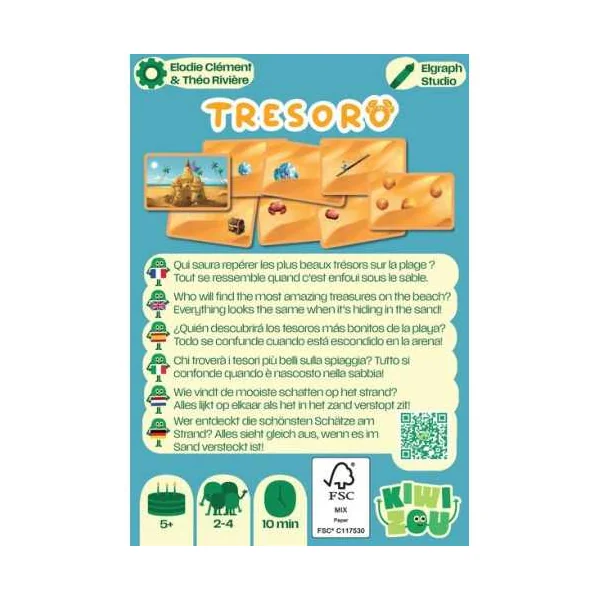 Découvrez le jeu Trésoro de Kiwizou, un jeu d’observation et de collecte pour jouer de 2 à 4 joueurs à partir de 5 ans.