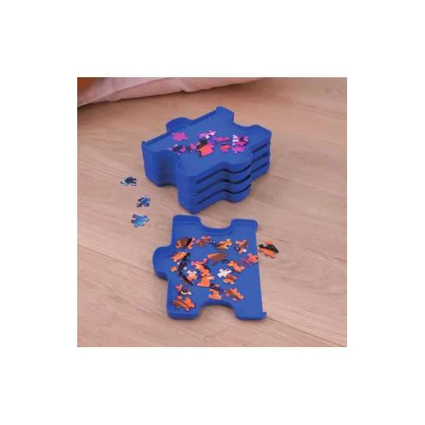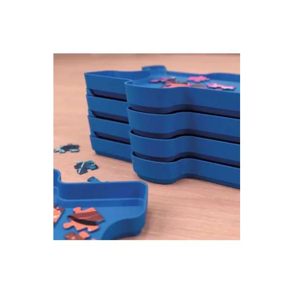 Grâce à ces huit bacs pratiques, triez les pièces de puzzle selon les couleurs ou les formes. Un système de rangement facile permet de les accrocher ensemble ou de les empiler. Vous pourrez ainsi, si vous le souhaitez, libérer l’espace pour une autre activité. Le côté sans bord facilite le glissement des pièces, tandis que la surface texturée garantit une excellente stabilité.