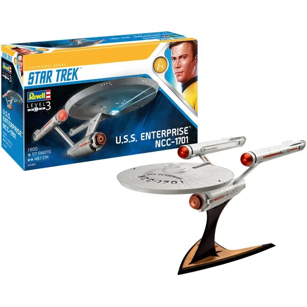 STAR TREK USS ENTERPRISE NCC-1701 (TOS) Maquette plastique, à monter, à coller et à peindre. Echelle 1/600. 117 pièces à assembler. Modèle monté 48,1 cm.