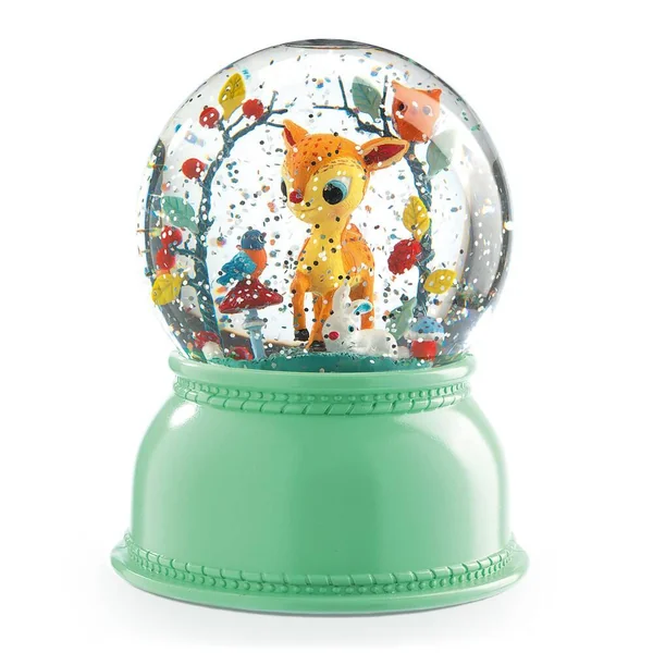 Une veilleuse qui est aussi une boule neigeuse , nul besoin de la secouer, un mécanisme fait tournoyer les paillettes et diffuse différentes couleurs ! Arrêt automatique au bout de 45 minutes.