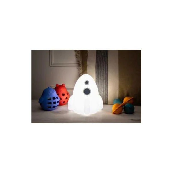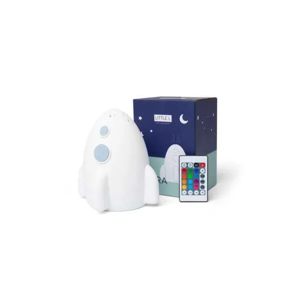 Découvrez la veilleuse fusée projecteur d’étoiles de LittLe L, une superbe veilleuse souple et douce qui s’illumine d’une belle lumière douce, qui change de couleur et qui projette des lunes et des étoiles au plafond. Un cadeau de naissance idéal pour rassurer les bébés et décorer sa chambre.