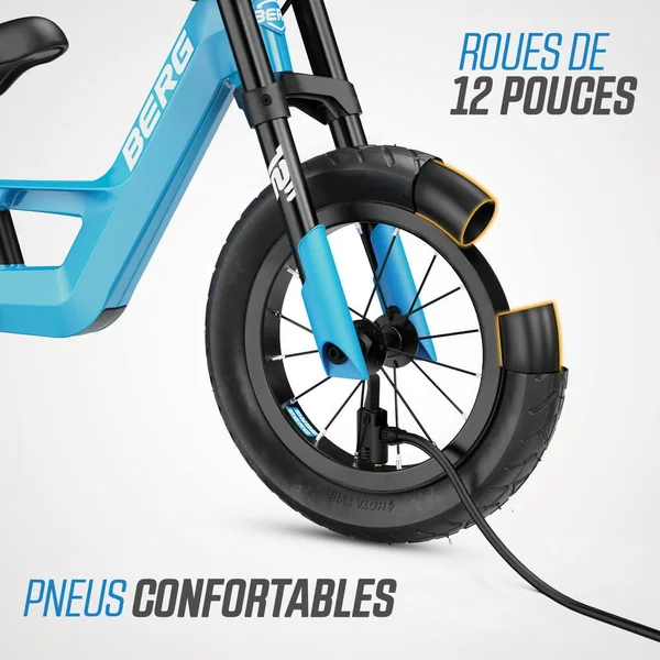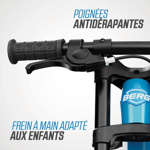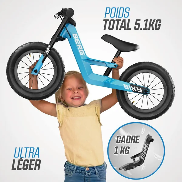 Le BERG Biky est un vélo d’équilibre pour les enfants de 2 à 5 ans. Vous avez une préférence plus classique ? Ou vous préférez vous attaquer à l’herbe et à la boue ? BERG vous propose le vélo d’équilibre idéal ! Choisissez parmi quatre versions : Cross, Retro, City et Mini. Le BERG Biky présente un aspect frappant et robuste grâce à son design distinct et à sa double fourche avant. Fabriqué en magnésium léger, le vélo est équipé d’un limiteur d’angle de braquage, d’une selle réglable et de pneus confortables. Points forts du vélo d’équilibre