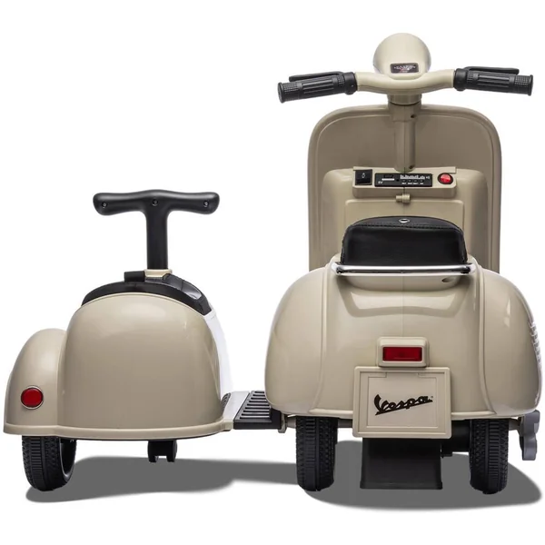 Le Vespa Side-Car pour enfants allie le charme intemporel de la célèbre marque Vespa à des fonctionnalités modernes, pour offrir une expérience de conduite unique et sécurisée aux plus jeunes. Ceintures de sécurité : Une ceinture de sécurité à la taille assure une conduite sereine. Dimensions et Poids : Conception compacte et légère, facile à manœuvrer pour les enfants. Couleur et Style : Finition beige élégante avec un design non peint qui rappelle le style classique et raffiné de Vespa. Performances : Batterie: 6 Volts – 4.5Ah, offrant une autonomie de 40 à 60 minutes selon le poids des enfants et le type de sol. Temps de charge: 8 à 12 heures pour une recharge complète, permettant de longues périodes de jeu après une nuit de charge. Moteur: Puissance de 20W permettant d’atteindre une vitesse maximale sécurisée de 3 km/h. Gomme EVA pour une conduite douce et stable. Démarrage : Système de démarrage à clé réaliste. Feux avant : Pour une meilleure visibilité et sécurité. Options de divertissement : Prises Jack, USB, SD et connectivité Bluetooth pour écouter de la musique pendant les balades. Poids maximal : Peut supporter jusqu’à 40 kg, idéal pour deux enfants. Avantages : Le Vespa Side-Car pour enfants est conçu pour offrir des moments de joie et de liberté, tout en assurant la sécurité et le confort des jeunes conducteurs. Avec ses fonctionnalités modernes et son design classique, ce véhicule est parfait pour des explorations quotidiennes avec style.