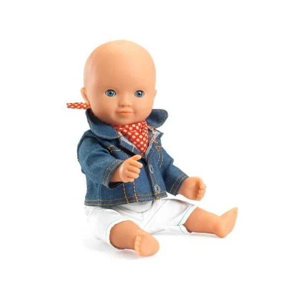 Découvrez la tenue Blue Jacket de la collection Pomea de Djeco, des vêtements adaptés aux poupées de 28 à 34 cm. Le cadeau idéal pour les enfants qui aiment jouer à la poupée dès 18 mois.