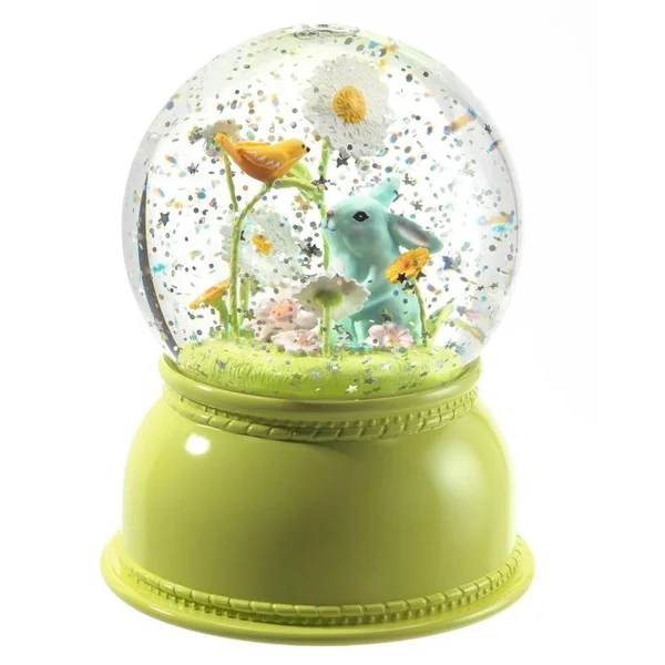 Une veilleuse boule de neige scintillante avec un ravissant lapin. Remplie de paillettes, cette veilleuse est équipée d’un mécanisme silencieux qui fait tournoyer les paillettes et diffuse une lumière discrète qui change de couleur. Pour des nuits douces et apaisantes.
