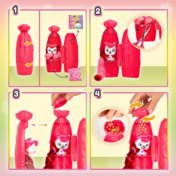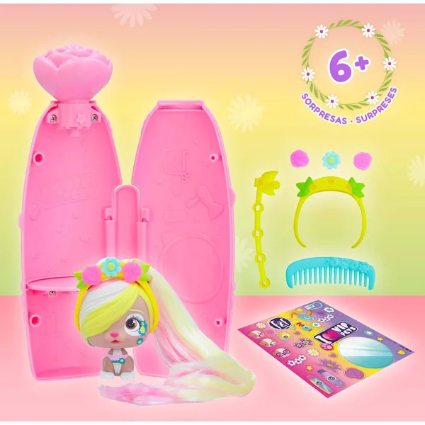 Découvre ton mini VIP Pets aux cheveux parfumés de 20 cm et ses accessoires pour la coiffer. Magique, tourne le bouchon et apporte une touche de paillettes de fleurs sur les cheveux de ta poupée! 13 mini poupées à collectionner. Inclus 3 accessoires.