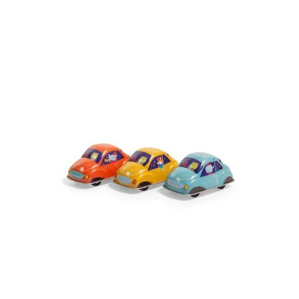 Petite voiture à friction en métal jaune, illustrée d’une fanfare en route pour un concert ! Frottez la voiture d’avant en arrière en exerçant une légère pression dessus puis lâchez… la voilà qui démarre à toute vitesse !