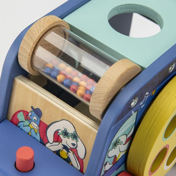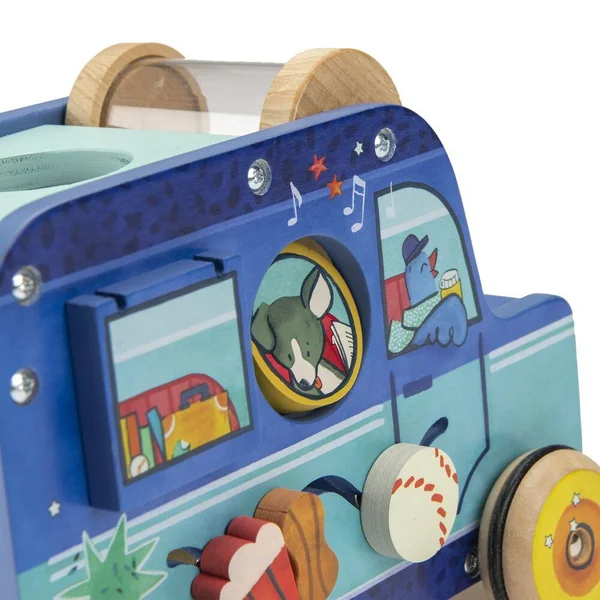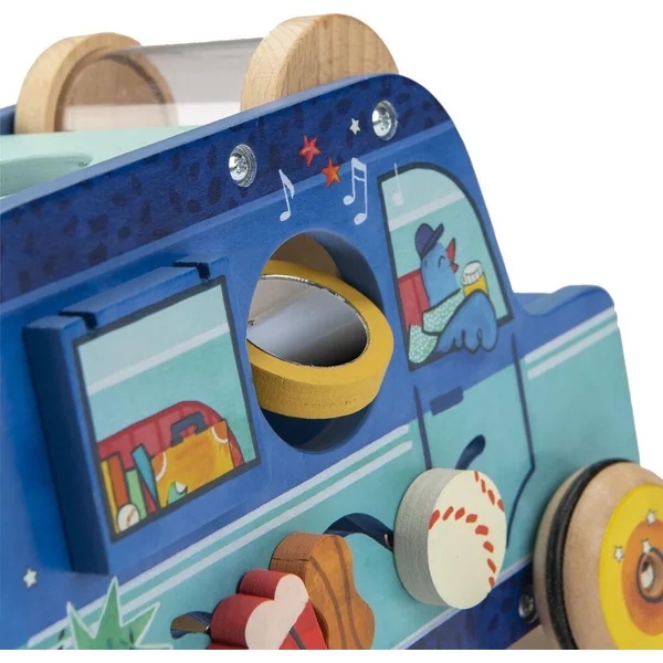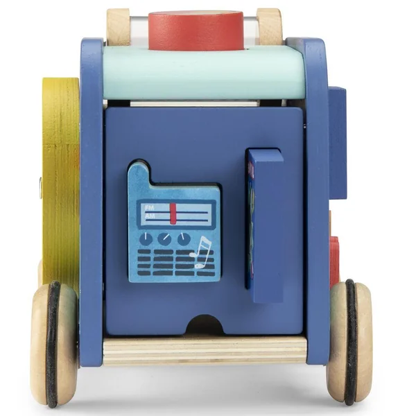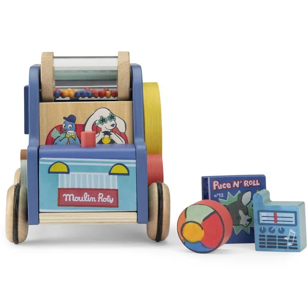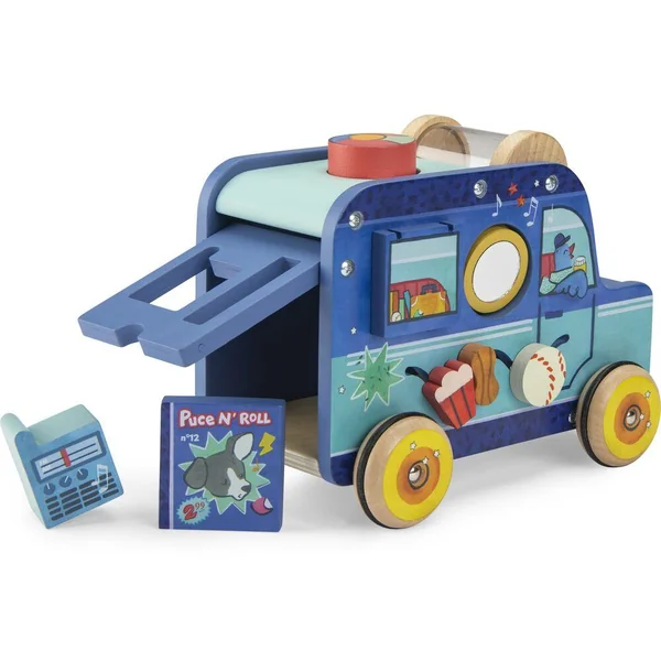 Cette flamboyante voiture Puce & Pilou offre sur chaque face de nombreux jeux et apprentissages pour bébé. Formes à encastrer, cylindre à billes, roue numérotée, labyrinthe, klaxon… Faites le plein d’activités pour éveiller et amuser les petits !