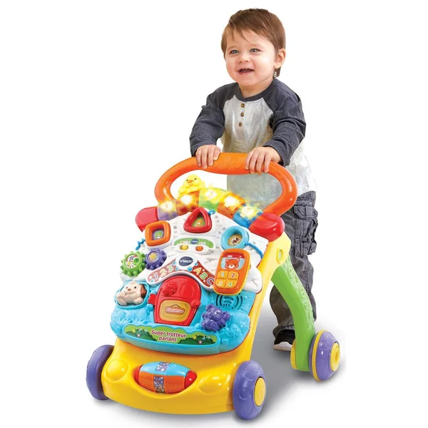 Quand votre bébé grandit, c’est le moment de lui offrir ce Super trotteur parlant 2 en 1 orange. Encouragez ses efforts dans le confort tout en lui apprenant à marcher en toute sécurité.