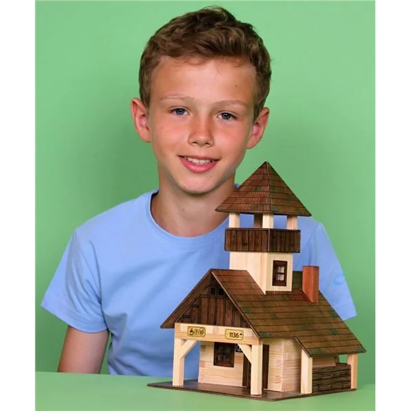 Jeu de construction en bois à coller dans lequel vous trouverez tout le nécessaire pour l’assemblage, y compris les instructions. Pour le collage, il faut utiliser de la colle à bois et du papier. Ce n’est pas inclus dans l’emballage.