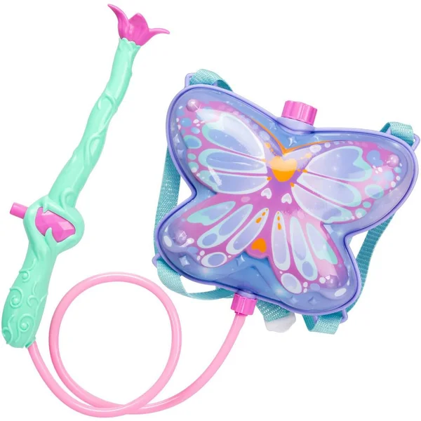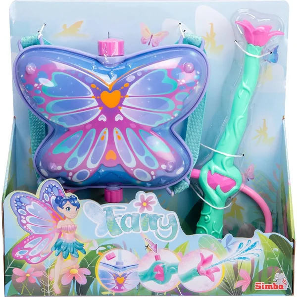 Réservoir d’eau à mettre sur le dos et baguette à eau de 32cm avec un volume de 1800ml d’eau. Tir jusqu’à 4m. Le réservoir d’eau est en forme d’ailes de fée.