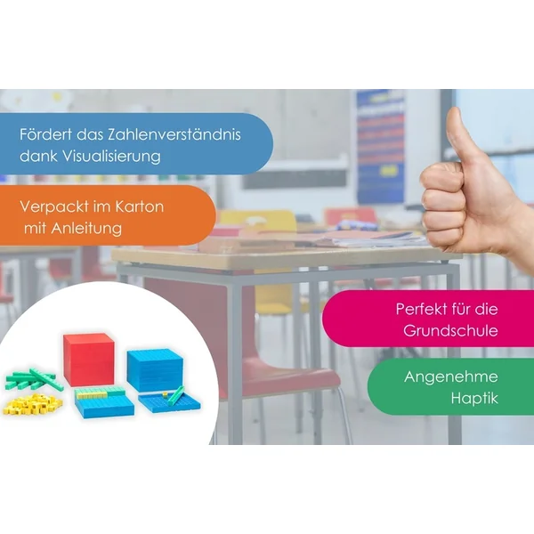 Ce set de 121 pièces fabriquées en RE-plast durable aide les enfants à partir de 6 ans à comprendre les chiffres de manière ludique. Il favorise la reconnaissance des structures et l’utilisation confiante des valeurs numériques, notamment lors de l’apprentissage des mathématiques. Idéal pour les écoles élémentaires pour renforcer les compétences arithmétiques, telles que la comparaison des volumes. Un outil arithmétique indispensable pour quiconque souhaite améliorer ses compétences en mathématiques.