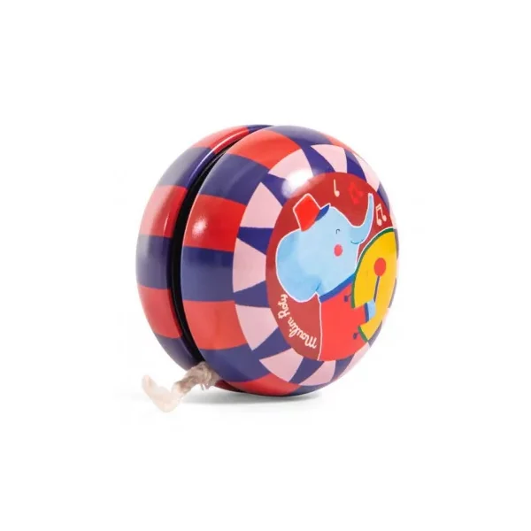 Découvrez le yoyo éléphant de la collection Les jouets en métal de Moulin Roty, un jeu d’adresse en métal avec un joyeux éléphant musicien pour amuser les enfants.