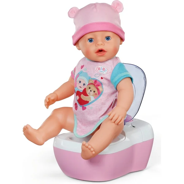 Le pot est conçu pour les poupées BABY born jusqu’à 43 cm. Dès que l’enfant « assied » la poupée sur le pot, le son de la chasse d’eau ou d’un pipi joyeux s’active et une lumière colorée s’allume. Cela signale aux enfants que tout se passe correctement – tout en leur donnant un retour d’information.