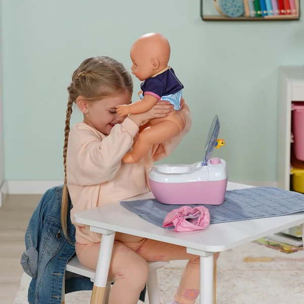 Le pot BABY born réagit à l’« utilisation » de la poupée avec des sons et des effets lumineux. Il est stylé en rose, facile à utiliser et idéal pour les enfants qui souhaitent jouer aux rituels quotidiens.