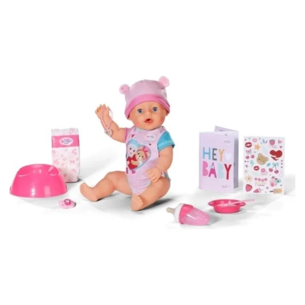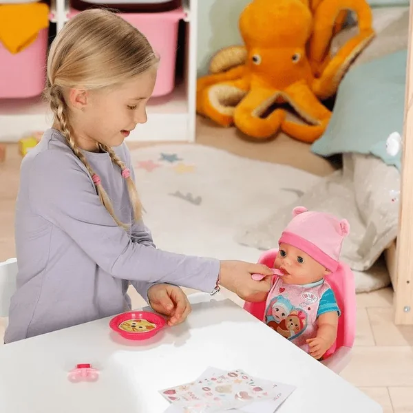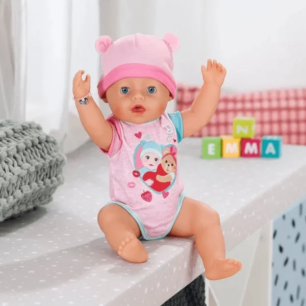 La poupée interactive BABY born est conçue dans les moindres détails. La flexibilité de ses membres apporte plus de variété au jeu, et la poupée est donc facile à manipuler. C’est une poupée qui cligne des yeux et ferme les yeux, ce qui rend son endormissement sans effort. La poupée adore le bain dans la baignoire. Les couches mouillées devront toujours être changées et la poupée devra être changée. La poupée a un mécanisme spécial qui lui permet de pleurer des larmes.