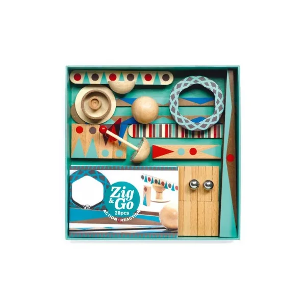 Découvrez Zig & Go 28 pièces de Djeco, un coffret de jeu de construction action-réaction pour les enfants à partir de 7 ans.